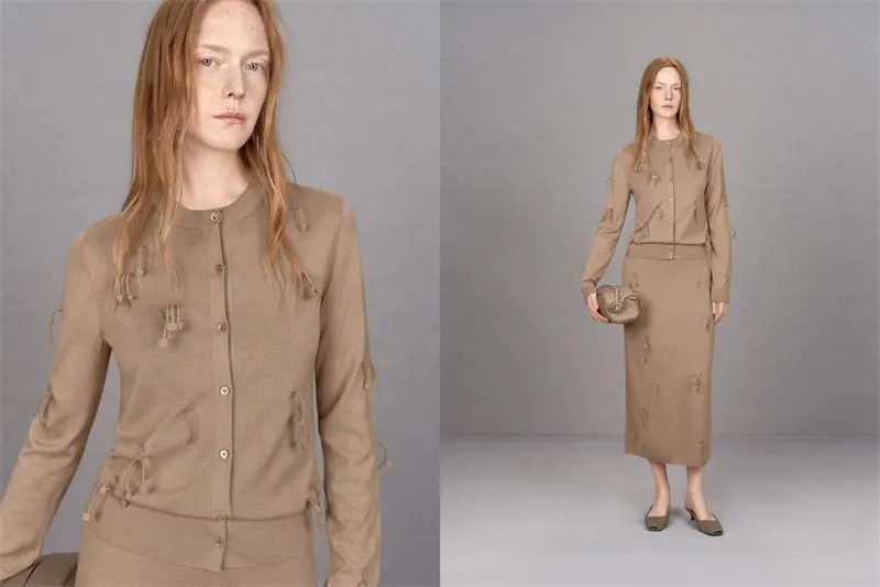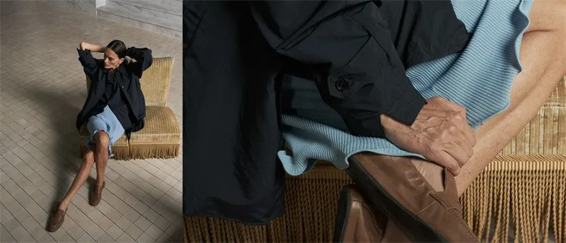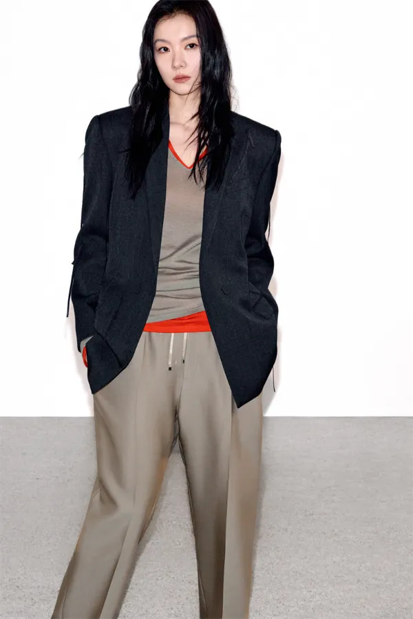 真正的巧思,往往隐于匠心打造的工艺中。JNBY以精准梭织赋予流苏立体垂坠、饱满而克制的生命力。流苏自然垂坠,流动飘逸的线条为日常时光添一抹慵懒层次。西装以经典H型裁剪为载体,打造专业气场,搭配简约丝毛混纺高品质面料毛衫,面料轻薄、柔软,使整体造型在挺阔雕塑感下保留穿着的舒适体验。