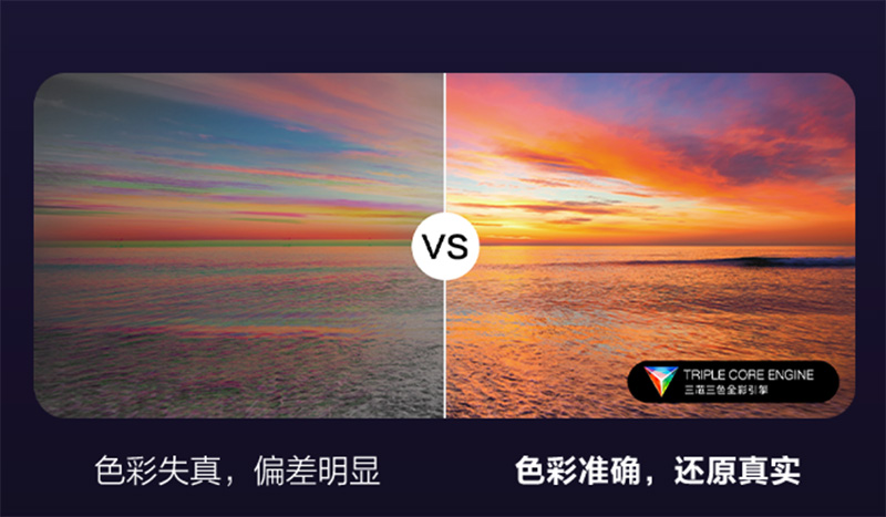 “三芯三色全彩引擎”为投影画面带来了前所未有的色彩表现。基于3LCD技术的实时全彩成像机制,该技术依旧保持了色彩亮度等于白色亮度的独特优势,使得画面更加清晰亮丽、色阶过渡细腻自然。同时,三色光源的运用还大幅拓宽了色域范围,为投影画面带来了更加丰富和生动的色彩表现。无论是暗部的细微色彩变化还是亮部的高光表现,都能得到精准还原和呈现。