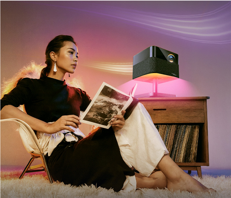 EF-50多彩4K智能投影机将自然光影融入多元生活场景,棉花粉、云野绿、落日咖三款自然配色,配以细磨砂艺术漆,轻巧便携如握温润卵石。