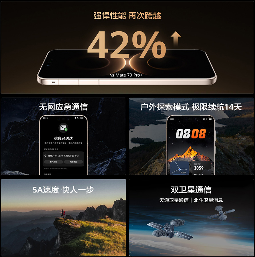 通信一直是华为手机的强项,HUAWEI Mate 80系列再次展现了其在这一领域的领先地位。该系列支持地网(蜂窝通信、Wi-Fi 7)、天网(天通卫星通信、北斗卫星消息)、无网(700MHz无网应急通信、2.4GHz畅连无网通信)三网通信,成为业界通信功能集成度最高的智能手机。特别是其无网应急通信功能,最远连接距离可达13公里,可穿透3堵墙,在城市灾害、户外救援等场景下堪称神器。此外,该系列还首发极限续航模式,最长支持14天极限续航,确保用户在极端环境下也能保持通讯畅通。