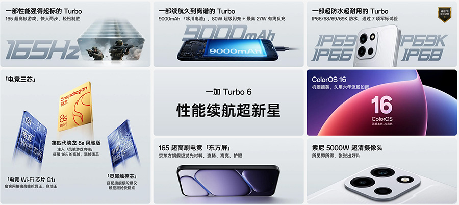 一加正式发布两款中端手机——一加Turbo 6与一加Turbo 6V,其不仅具有超长的续航,更有超强的防尘防水能力,让你户外游玩一整天也不会担心手机续航与安全。