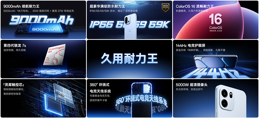 续航方面,一加Turbo 6搭载了同档最大的9000mAh超巨量冰川电池,率先引领中端机电池容量进入9K时代,实现了从早到晚的无充电焦虑体验。实测显示,该机可连续刷抖音30小时,或《王者荣耀》连打10小时,亦或户外徒步导航17小时,续航能力令人惊叹。配合80W超级闪充和27W超快反充技术,用户可迅速补充电量,告别电量焦虑。耐用性方面,一加Turbo 6支持IP66/68/69/69K超豪华满级防尘防水及1.5米高度防摔,做到了同档最耐用。