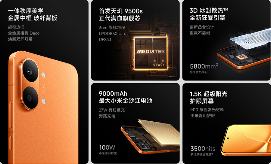 REDMI Turbo 5 Max配备了迄今为止最大的9000mAh小米金沙江电池,相比上代容量暴增19.2%,电池能量密度提升至惊人的894Wh/L,是目前小米体系中最高的能量密度电池。这一改变不仅延长了手机的续航时间,也让用户在出行时更加无忧。REDMI Turbo 5 Max支持IP66&IP68&IP69&IP69K满级防水,无论是日常泼溅还是意外落水,都能轻松应对。同时,手机还支持湿手触控2.0技术,即使在手指湿润的情况下也能准确识别触控操作。