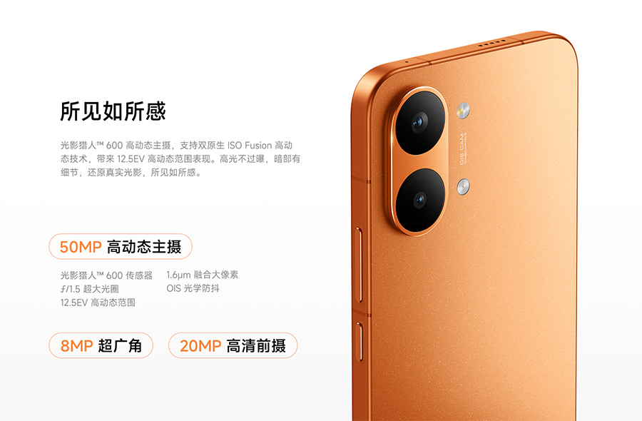 在影像系统上,REDMI Turbo 5 Max首发搭载了光影猎人600 50MP高动态主摄,采用1.6μm融合大像素和F1.5光圈,动态范围可达12.5EV,在夜景人像和高动态视频场景下画质有显著提升。此外,手机还配备了800万超广角镜头,满足用户在不同场景下的拍摄需求。