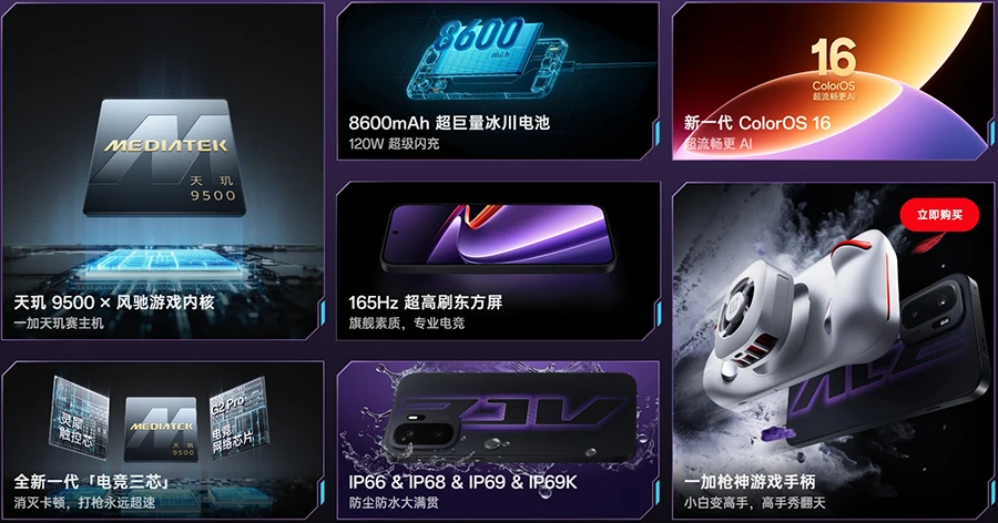 作为本次发布的最大亮点,一加Ace 6至尊版首发搭载了联发科天玑9500旗舰芯片。该芯片采用台积电第三代3纳米工艺制程,配合全大核架构设计,在能效比上取得了显著进步。相比前代产品,CPU性能提升幅度达到32%,同时功耗降低55%,这一数据在移动处理器领域具有里程碑意义。