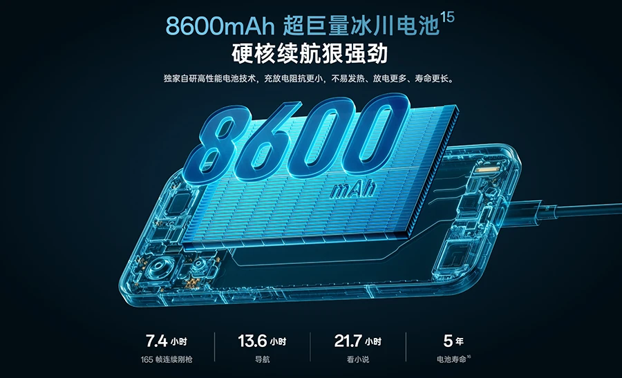 续航能力是该机另一大优势。内置8600mAh超大电池,并支持120W超级闪充技术,有效解决了高性能带来的电量焦虑问题。影像系统由5000万像素主摄、800万像素超广角镜头及1600万像素前置摄像头组成,全方位满足用户多元化拍摄需求。