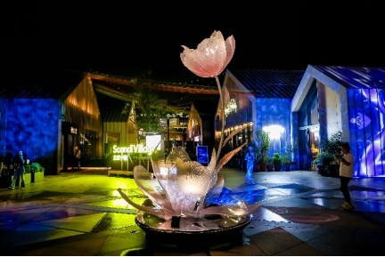 值得一提的是,作为第二届上海国际光影节长宁分会场的主展演区,上海荟聚以“星耀荟聚 · 无界共生”为核心,于周年庆当晚同步启幕光影节。活动期间,上海荟聚将打造八组光影作品:“极光邀约”以宇宙为背景,用北极光与星轨元素诠释“宇宙-人类-城市”共生关系;“双生花·绮丽漫境”以上海白玉兰与瑞典郁金香为象征,通过四幕光影秀与实体装置演绎双城故事;“触・光”环节将诺贝尔文学奖得主托马斯・特朗斯特罗默的作品转译为盲文光影,配合湖蓝色光效与水纹投影,营造包容的感官体验;“自然代码”鼓励观众借助动物手势或国际通用手语触发画面,增强互动趣味;“鱼跃星光”则以印有长宁碳汇数据的彩色亚克力鳞片,将抽象的生态指标转化为可感知的艺术,传递绿色理念。上海荟聚以光为语言、影为载体,打造跨越文化、融合科技与艺术的美好生活场景,为城市生活注入更多人文温度。