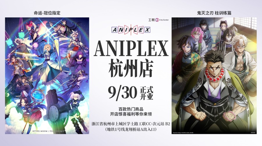 索尼集团成员,安尼普(上海)文化艺术有限公司(下称,ANIPLEX)宣布,ANIPLEX杭州店于9月30日正式开业。新店位于杭州工联CC地下二层223、224号,集品牌沉浸式体验与周边购买于一体,将汇聚《Fate/Grand Order》《鬼灭之刃》《孤独摇滚!》《魔法少女小圆》系列等多部人气作品。同时,丰富的线上线下活动在开业期间举办,购物特典、社交平台互动礼与限量福袋等系列活动同步推出,为杭州及周边城市的动画、手游、影视爱好者构建一个可逛、可玩、可分享的沉浸式娱乐新地标。
