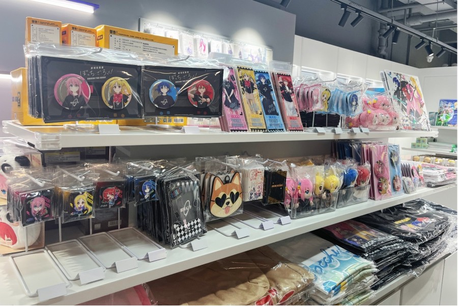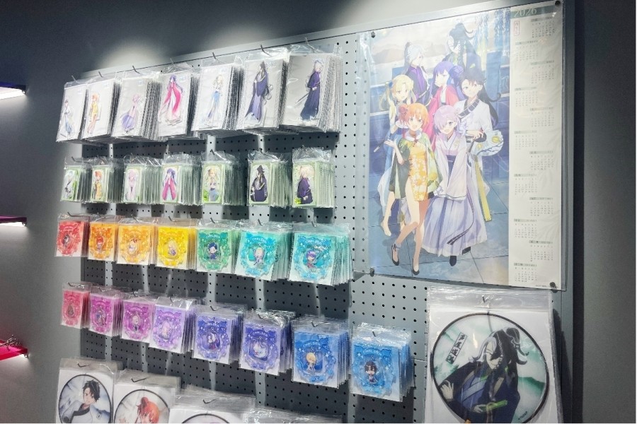 店内汇集多部经典与热门作品的全品类周边,涵盖精致手办、色纸、玩偶、徽章盲盒及文具等百款热门商品。展示的IP包括《Fate/Grand Order》《鬼灭之刃》《孤独摇滚!》等人气作品。