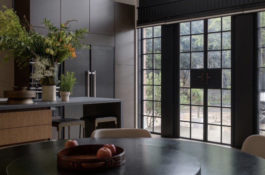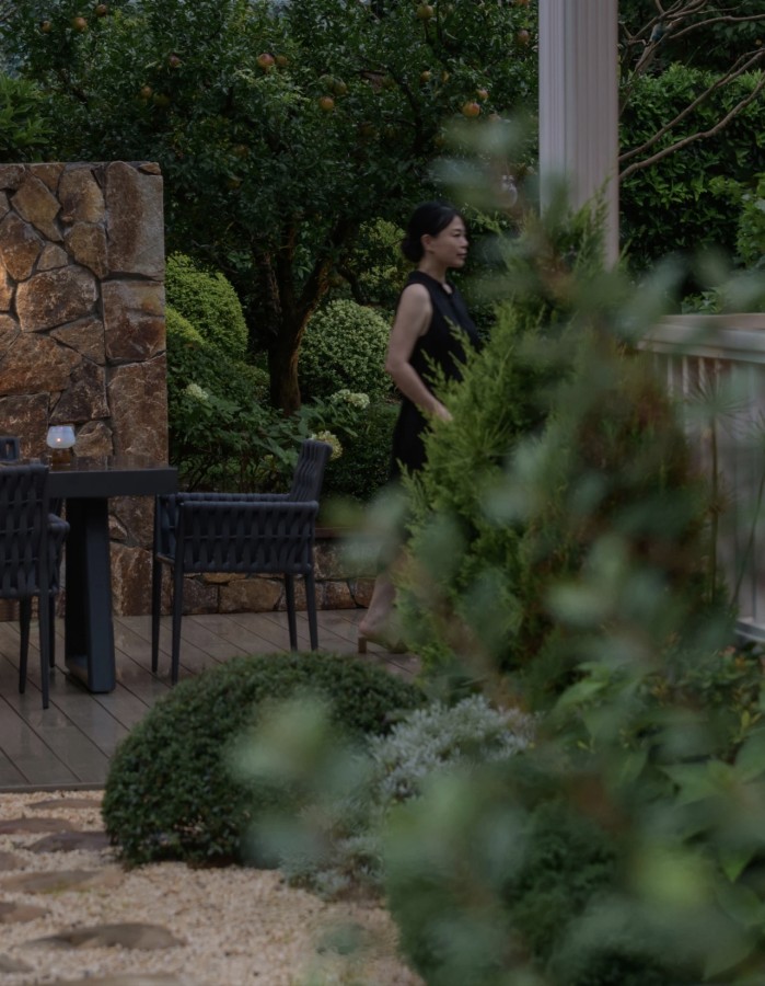 庭院巧妙将户外餐厅与花园融在一起,四周被绿植环抱,宛如藏着一处秘密花园,连用餐都变成了与自然近距离接触的温馨时刻。而待在这所房子里,人会不自觉地静下来,隔绝外界的嘈杂,转而专注于自我。