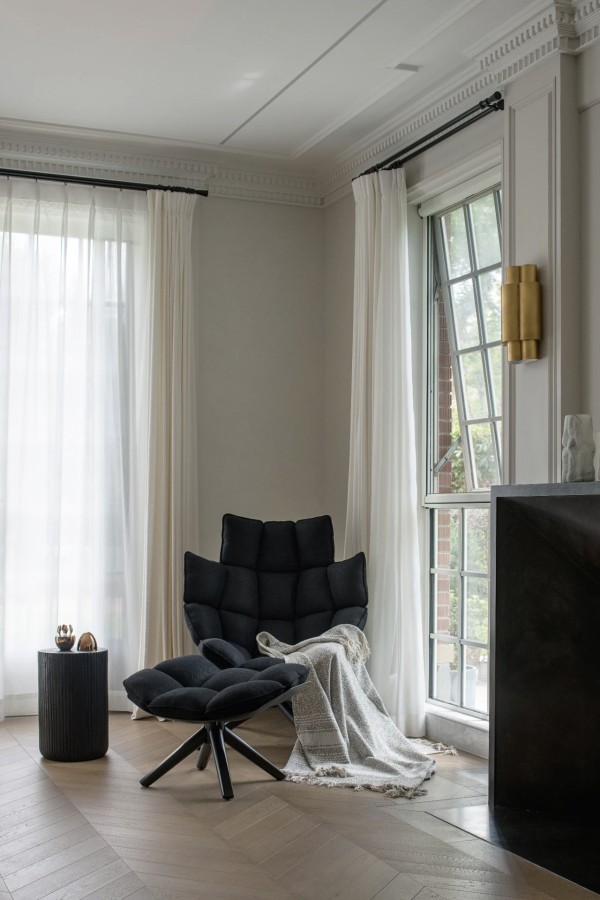 设计的力量在于让人在失速的算法洪流中,把身边可以感受的美好放在眼前,感受具体的时间。内心的丰盈自洽,并非向外追逐索取,而是往内心深处探寻。家具布局和器物落定看似随意,实则经过设计师精准推敲,让空间在理性架构下流淌随性自在的气度。