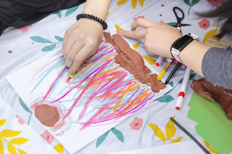 作为“五色慢养”计划的核心实践,系列课程聚焦快节奏生活中的普遍心理需求,联合上海洄澜心理咨询中心,摒弃传统说教,打造了“重体验、强实用”的公益课堂。首场课程以 “斑马为什么不得胃溃疡” 为趣味主题,将动物行为学智慧融入压力管理,帮助参与者建立 “与压力共存” 的科学认知;收官场工作坊则进一步创新,深度融合视觉艺术、即兴戏剧与自我对话三大形式,打造深度探索之旅。活动中,参与者通过盲抽彩虹卡分组破冰,在自由创作环节以各种媒材具象化内心世界,并在同伴的反馈中完成对“未来我”的展望。
