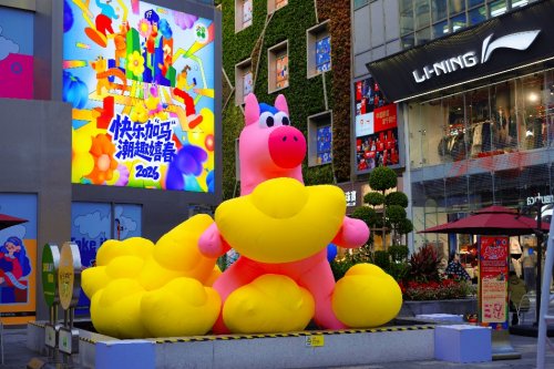 新年即将到来,互送祝福是中华民族延续千年的美好传统,大宁国际联合知名设计团队PHAIdesign,以“走马嬉春”为主题,打造了一场融合传统意象与当代美学的艺术装置展。作品以灵动矫捷的小马形象为核心,将传统祥瑞符号与当代艺术语言相碰撞,鲜活的姿态与新年的喜庆氛围相呼应,传递出春风得意、一览繁花的畅快欣喜和蓬勃向上的生命张力。