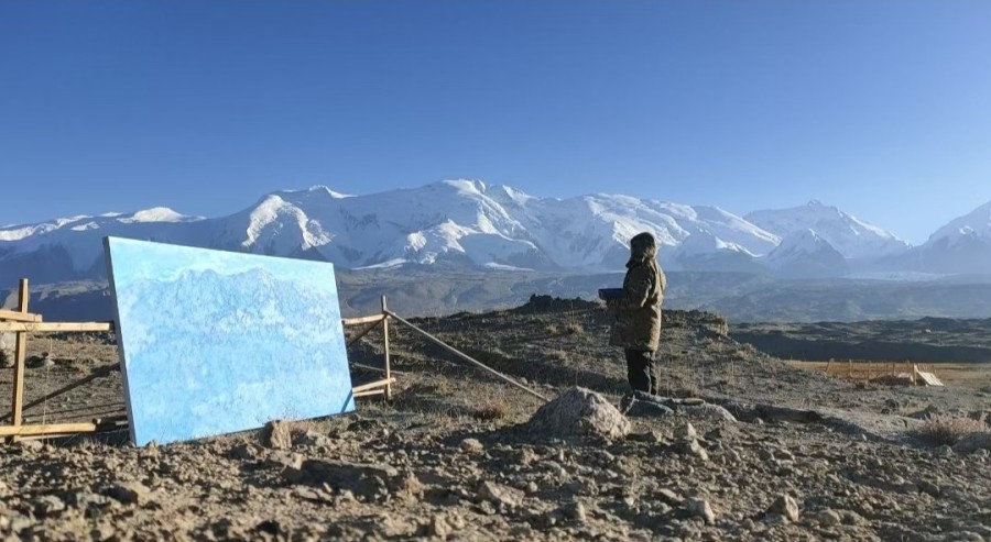 艺术家在昆仑写生 图片来源:震旦美术馆官方