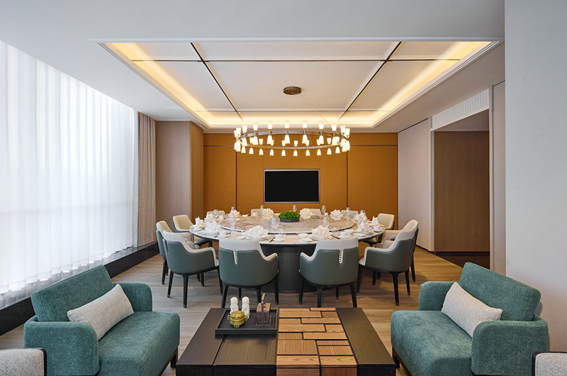除了完善的餐饮体验外,酒店还格外注重打造各类配套设施,旨在助力宾客从容地平衡工作、休憩与焕新。位于酒店22层的汇纹酒廊(Monogram Lounge)坐拥城市全景,为宾客营造静谧舒适的私享空间。此外,酒店还配备室内恒温泳池、设施齐全的健身中心、桑拿房,以及可满足各种规格的商务会议与社交宴会需求的宴会厅及会议室。