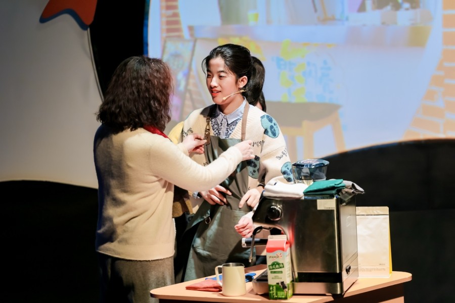 “星语心愿”的每一个桥段,都取材于学生们的日常学习与情感故事,从剧本编排到舞台呈现,凝聚着孩子、老师与家长的共同心血。通过耐心的陪伴与引导下,性格内敛的她突破自我向妈妈表达爱意;步履蹒跚的他在舞台上演绎追光梦想;内向怯懦的她“指尖生花”用布艺编织斑斓世界;活泼好动的他在千百次练习中化身为咖啡梦想家……